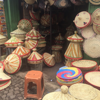 After a lot of honking and swerving between cars, we arrived at the market. The whole place was a fusion of what I imagined markets in India to look like, but with a load of random goods from China. Plastic chairs from China. Red chili peppers grown a few kilometers away. Kitchen appliances from China. Hand-woven baskets being made from local materials. Hygiene products from China. Art work painted by Ethiopians on leather. Row after row after row. If it weren’t for Fanta, I would have gotten so, so lost amongst the endless vendors and shops. He helped me learn how to haggle for a few souvenirs for my family, which I was overly shy about and he managed to aggressively cut any price at least in half. He was relentless. I would watch him have a back-and-forth with the vendor, shake his head, throw the souvenir on the table and start to walk away, go back into more back-and-forth, throw the souvenir on me, continue to shake his head disapprovingly, and then tell me to throw down cash as quickly as I could and leave. I was a lost pup, and he was in his element.